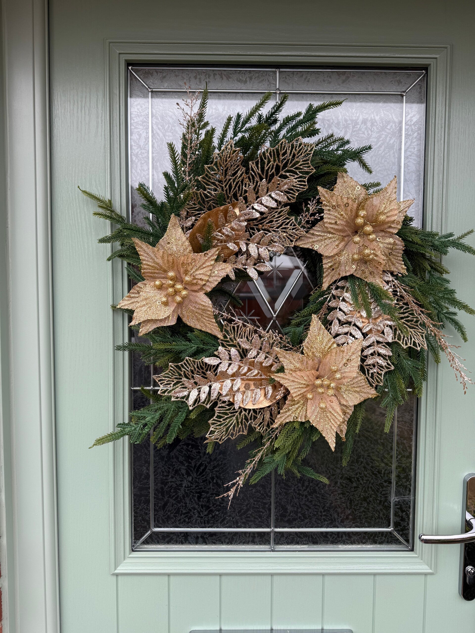 Gold poinsettia wreath and leaves